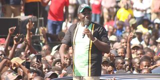 Deputy President William Ruto and other Kenya Kwanza alliance leaders address a crowd at Kampi ya Moto in Rongai , Nakuru City during Nakuru economic forum on May 22 ,2022.