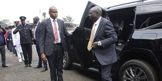 Deputy President Rigathi Gachagua arrives at Kericho Green Stadium for Mashujaa Day fete on October 20, 2023.