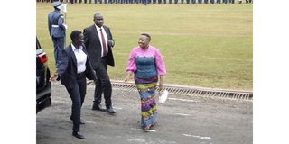 Gender CS Aisha Jumwa arrives at Kericho Green Stadium for Mashujaa Day fete on October 20, 2023.