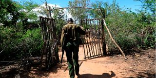 A police officer at Chakama Ranch in Kilifi County during a raid on April 17, 2023.