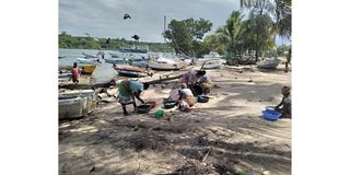 Fishmongers at the Kilifi Old Ferry. Fishermen have decried low catches that they say have pushed up the prices of fish.