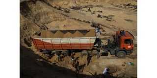 Magarini residents loading sand into a truck. Sand harvesting is the main economic activity in the area.