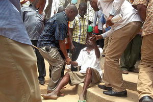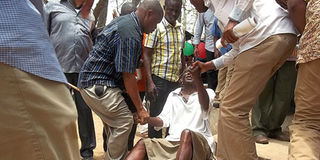 Security aides subdue Lengo Karisa at an Okoa Kenya rally in Kinango market, Kwale County on September 29, 2014 after he attacked Raila Odinga and Salim Mvurya.