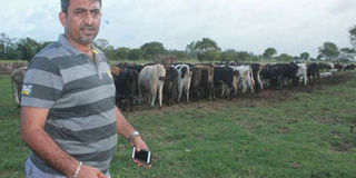 Sidik Sumra with his cattle in his Kilifi farm in 2016. Sumra was killed in 2021 together with his driver Rahil Mohamed and land agent James Kazungu.