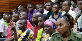 Some of the 92 persons accused alongside Pastor Paul Mackenzie with 238 Counts of Manslaughter when they appeared before Mombasa Chief Magistrate Alex Ithuku on November 10, 2025.