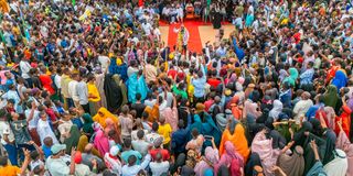 Deputy President Kithure Kindiki addresses residents of Lafey, Mandera County on August 23, 2025.