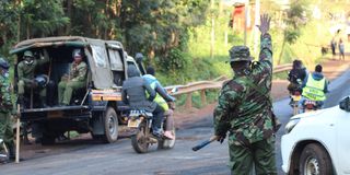 Police officers seek to restore calm in Kisii town after morning protests by people opposed to a visit by DP William Ruto.