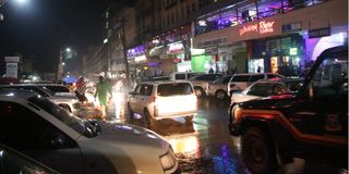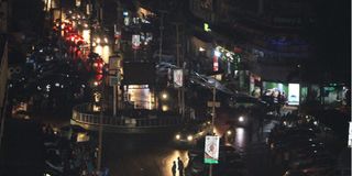 A street in Kisii town by night in this picture taken on October 12, 2020.