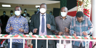 Various leaders dancing during the Madaraka Day celebrations.