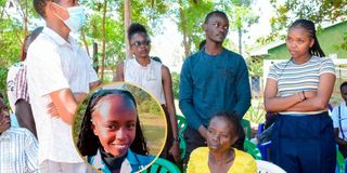 College mates of Rose Aoko Olang'o (inset) condole with her grieving family in Otonglo, Kisumu, on March 9, 2026.
