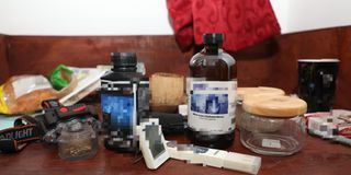 Some of the materials recovered by police from a Kwale homestead, believed to have been used in the manufacture of illegal drugs.