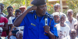 Coast Regional Police Commander Ali Nuno uring a public baraza in Diani, Kwale County.