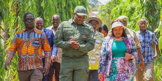 From right: Tourism CS Rebecca Miano, Baringo Deputy Governor Felix Maiyo and Baringo County Deputy Speaker Kipruto Kimosop during the World Wildlife Day, which was marked at Lake Bogoria on March 3, 2025.