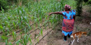 Jackline Musyoki, a famer at Kidongo area, Shimba Hills in Kwale County at her Farm on May 27 2025. The rise in human-wildlife conflict and lack of proper road transport have hindered production.