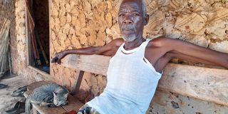 Mzee Hamisi Mwakireo , a village Chairman at Diani Scheme at his home on July 20,2021. He said with the upgraded road, an acre of land is now sold at Sh3.5 million, up from Sh2million due to high demand.