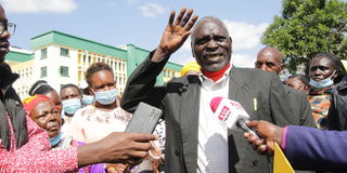 Residents of Lolldaiga area in Laikipia county protest outside the Nanyuki law court on June 14, 2022. This was after a hearing of a matter where they have sued British Army Training Unit in Kenya-Batuk over a fire incident that was sparked by their training exercises