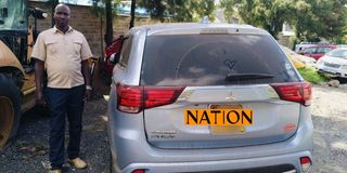 Her husband, who is being treated as a person of interest by the detectives, had left home at about 1am on Wednesday in this Mitsubishi Outlander, without saying a word. Standing next to the vehicle is Athi River DCIO Wesley Langat.