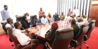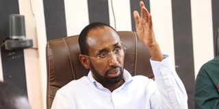 Mandera Governor Mohamed Adan Khalif during a meeting with security agencies and non-local representatives, following a terror attack.