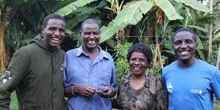 Mr Mwenda Ruteere (second left), elder brother of Justice Martha Koome with his wife Grace sons Mugambi (right) and Mutuma (left).