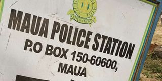 A sign outside Maua Police Station in Meru County. Police officers there are investigating the murder of Queen Love Makena, who was found dead after going missing in April.