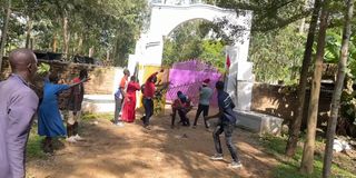 Members of the public try to force their way into St Joseph Mission of Messiah in Africa Church in Opapo Village in East Kamagambo Location in Rongo Sub-county, Migori County on April 11, 2025.