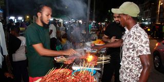 Residents enjoy a variety of street foods along Makadara Road in Mombasa County on March 20, 2024. The delicacies are hard to come by during the daytime as Muslims go about their fast during the Holy Month of Ramadhan.