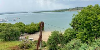 A high-angle view of Tudor Beach, one of Mombasa’s underutilised shores. Despite its potential as a vibrant public beach, the area remains neglected due to a persistent stench from nearby sewage lines that scares away ocean lovers.