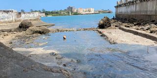 An open public access point to the Indian Ocean near Fort Jesus in Mombasa, where stormwater and sewage runoff flow directly into the sea. While the view remains a tourist attraction, the pollution prevents most visitors from swimming, leaving the water to only the bravest locals.