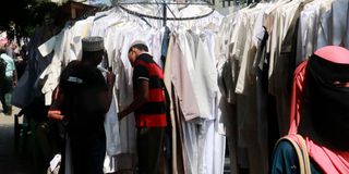 Mr Aziz Mohamed, a trader selling second‑hand ‘kanzu’ in Mwembe Tayari, Mombasa, says the sales are good this month because the attire is crucial throughout Ramadhan and on Eid.