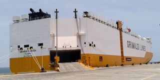 The Pure Car Carrier, MV Grande Florida Palermo from Yokohama, Japan, that was diverted and docked at Lamu Port on Wednesday March 18,2026 owing to the Middle East conflict. It discharged 3,800 vehicles at Lamu port initially destined for the Middle East countries.