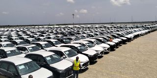 Some of the vehicles discharged at Lamu Port. They were initially destined for Middle East countries.