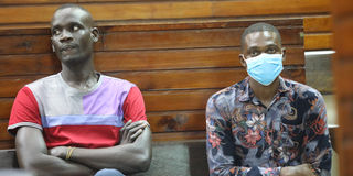 Security guards Hamisi Karisa (Left) and Said Mwamuye at the Mombasa Law Courts on July 26, 2022. They have been charged with the murder of David Wokabi Kamau after he relieved himself Nyali Centre parking lot on January 7, 2018.