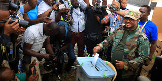 UDA candidate in the Mombasa governor elections Hassan Omar votes at Kaderbhoy polling station.