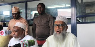 Council of Imams and Preachers of Kenya(CIPK) officials together with families of victims of enforced disappearances during a press brief in Mombasa County.