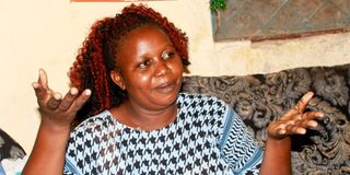 Eunice Muthini Musenya, the wife of 42-year-old Musyoki Kinundo, a truck driver who was murdered while transporting coffee from Uganda addresssing the press at her family home in Mombasa.