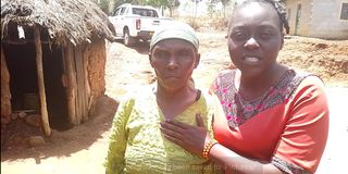 Mary Ng'endo, 25, and her mother Teresiah Wanjiku, 60 at their Ithanga home compound on October 18, 2023. They are on the verge of losing their home over Sh10,000 loan
