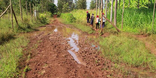 A man shows a path that leads to Maica Ma Thi village in Maragua, Murang’a County.
