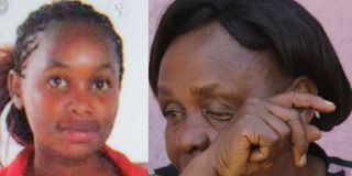 Eliza Joyce Wangui (left) who went missing in 2015, in a past photo. Right, her mother Eunice Kariithi Wahura during an interview at her home in Kamune village, Murang'a on September 10, 2023.