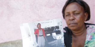 Eunice Kariithi Wahura holds a picture of her daughter Eliza Joyce Wangui taken at work.