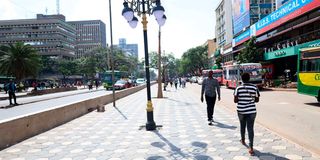 Pedestrians walking on a newly refurbished Cabro Paving along Moi Avenue in Nairobi on December 11, 2025.