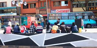 People sitting next to Modern Street Lighting along Moi Avenue in Nairobi on December 11,2025.