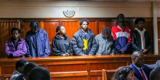 Those arraigned are Dennis Kariuki Gitonga, Louis Osiro, Lucy Moraa, Ali Kibwana Kamaki, Precious Kendi Mutembei, Austin Ochieng and Wendy Kerubo.