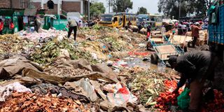 Heaps of uncollected garbage at the Muthurwa market in Nairobi on February 15, 2021. Traders in this market are forced to operate next to this dirty, stagnant water despite paying rates to City Hall.