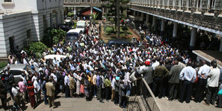 Nairobi City Council workers outside City Hall in Nairobi during a past strike.