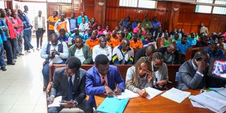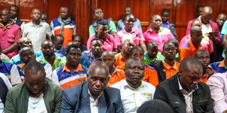 Matatu sacco members follow proceedings at the Milimani High Court on November 19, 2025.