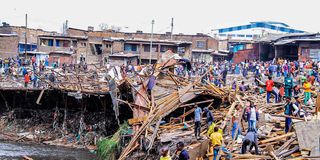 The demolition by Nairobi County aimed to clear a 50-metre buffer from the riverbank, 30 metres to restore riparian land and reduce flooding and 20 metres for the new market.