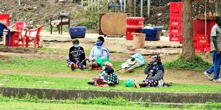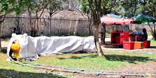 City residents relax on an open space next to a drainage at the Uhuru Park.