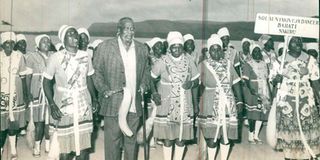 Nyakinyua dancers with President Jomo Kenyatta.