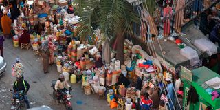 People going on with their businesses in Eastleigh, Nairobi on February 16, 2025. Eastleigh Mall owners are complaining of an increase of hawkers and boda boda operators outside their buildings thus obstructing access to their businesses.