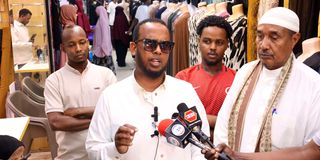 Eastleigh Business District Association Organising Secretary Omar Yussuf addressing journalists on February 16, 2025.